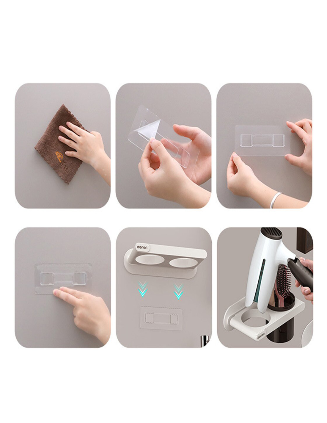 Grâce à ce support mural, vous pouvez ranger sèche-cheveux, brosses, brosses à dents et autres accessoires qui encombrent ou salissent votre salle de bain.