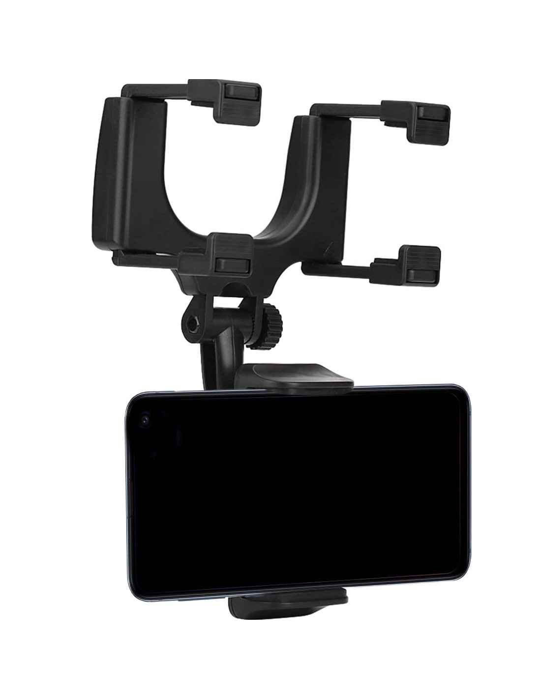 Support de téléphone de voiture design rotatif à 360°. Il se fixe sur le rétroviseur de votre véhicule, il est anti-vibration et antidérapant. Un système pratique et sûr, puisqu'il n'est pas nécessaire de tourner la tête pour regarder le navigateur. Cela signifie que vous êtes toujours concentré sur la route à suivre. Fabriqué en matière plastique de haute qualité, avec deux couches de supports en silicone renforcés, protégeant votre appareil des chutes et des rayures pendant la conduite. Conception rotative à 360 °, vous pouvez positionner votre téléphone comme vous le souhaitez. Il est réglable, adapté à la plupart des téléphones dans une largeur maximale de 10 cm. Installation rapide et facile, pas d'étapes ni d'outils compliqués requis. Vous pouvez l'enlever et le remettre quand vous le souhaitez.