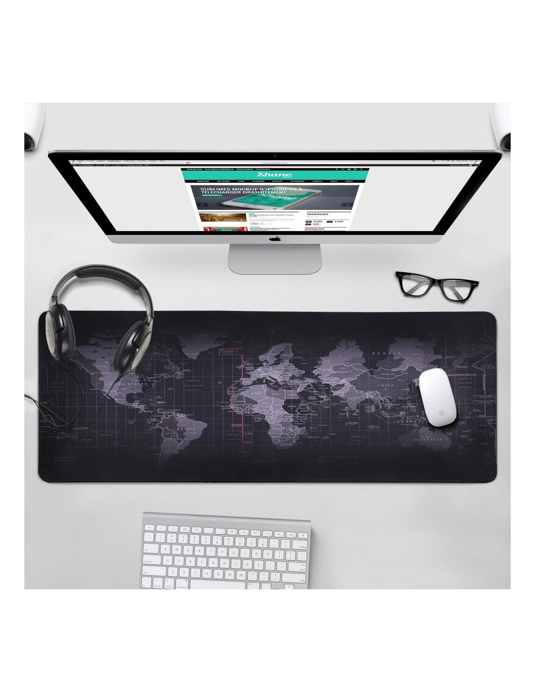 Tapis de bureau antidérapant avec impression de carte du monde, adapté à tout type de souris et de clavier.