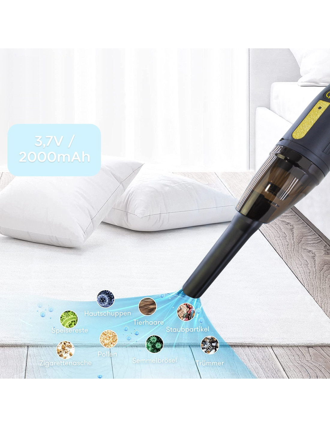 Conçu pour la voiture, cet aspirateur à main est également parfait pour les surfaces de canapé, de table et de lit.