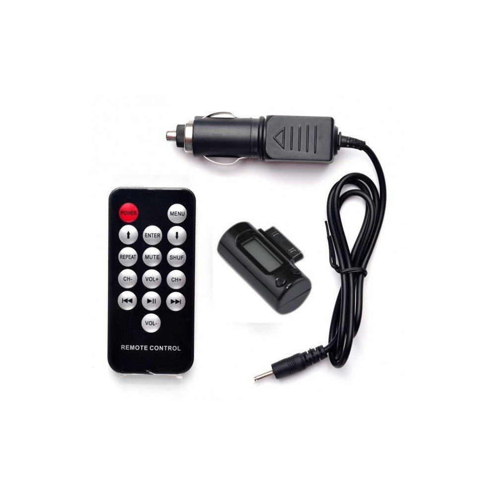 Transmetteur FM compatible avec l'iPhone et l'iPod, permet de transmettre le signal audio sur modulation de fréquence FM. Pour écouter de la musique vient de mettre la même fréquence sur votre autoradio ou à la maison et sur l'émetteur et, grâce à ces quelques étapes simples, vous pourrez écouter de la musique et l'audio transmis par le dispositif auquel vous vous connectez l'émetteur à la chaîne stéréo. L'objet est alimenté directement depuis l'iPhone, mais il a aussi un câble pour permettre à la charge si le téléphone a été déchargement ou pour sauver la vie de la batterie. Intègre légers et pratiques en toute transparence avec les appareils iPhone et iPod, dispose d'une télécommande pratique qui permet la gestion de la plupart des fonctions avant / arrière, le volume, le réglage de canal de transmission, précédent / piste suivante, faire défiler la liste des chansons, répéter, lecture aléatoire et muet. Parfait pour une utilisation dans votre voiture!