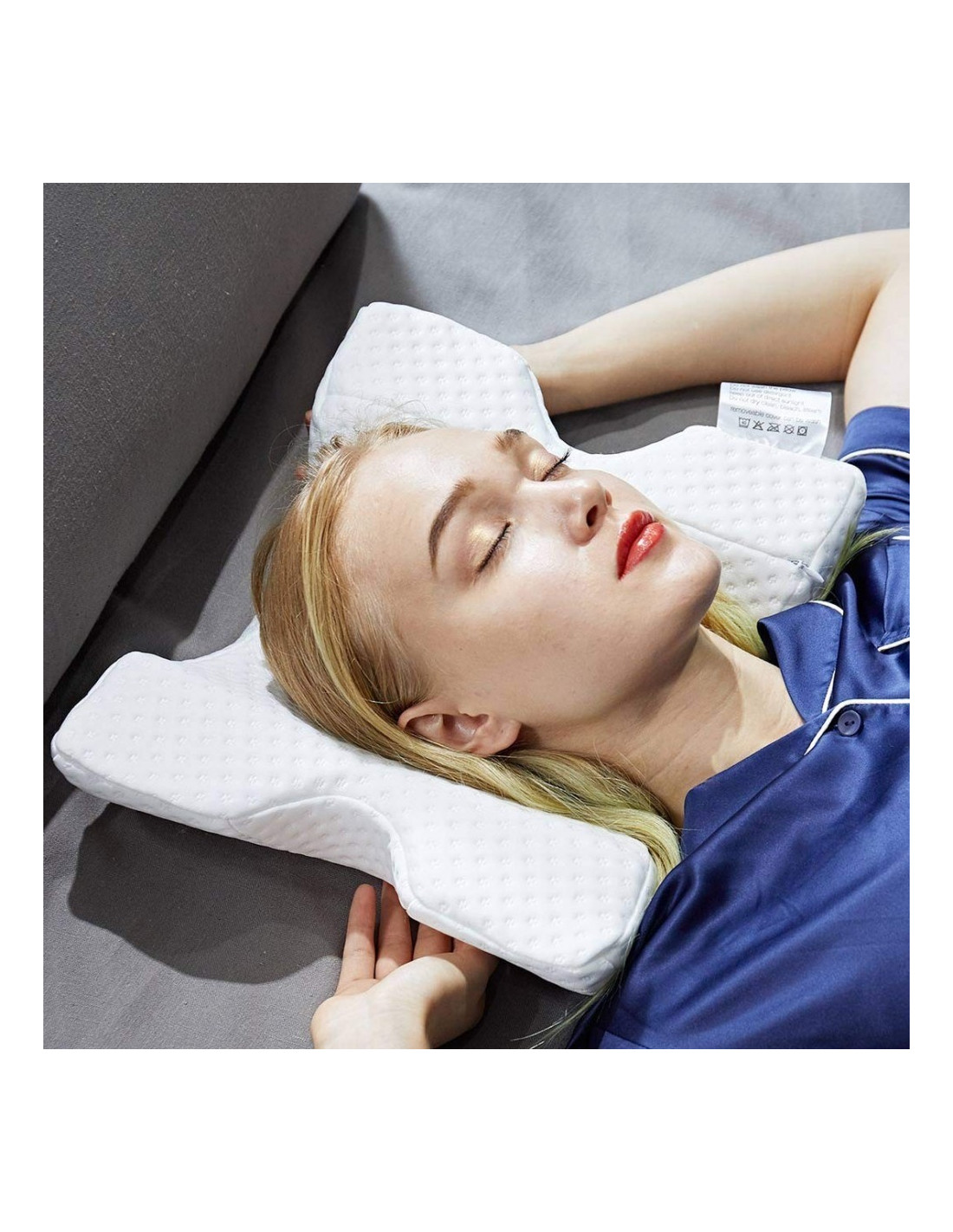 L'oreiller cervical en mousse incurvée aide à soulager les problèmes cervicaux, les douleurs au cou et aux épaules.