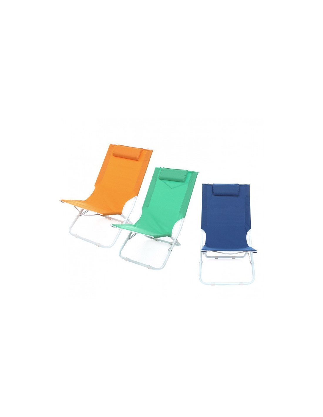 Equipé d'un coussin tubulaire de 22 mm d' épaisseur, structure en acier résistante et tissu textilène qui permet au sable de glisser facilement hors de la chaise.