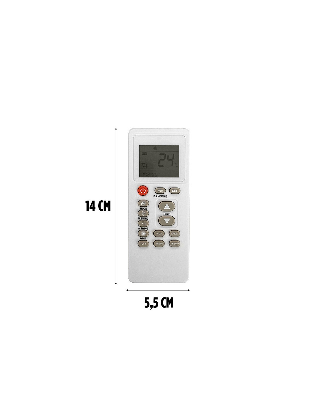 Dimensions : 16 cm x 4,5 cm x 2 cm (standard pour télécommande universelle)