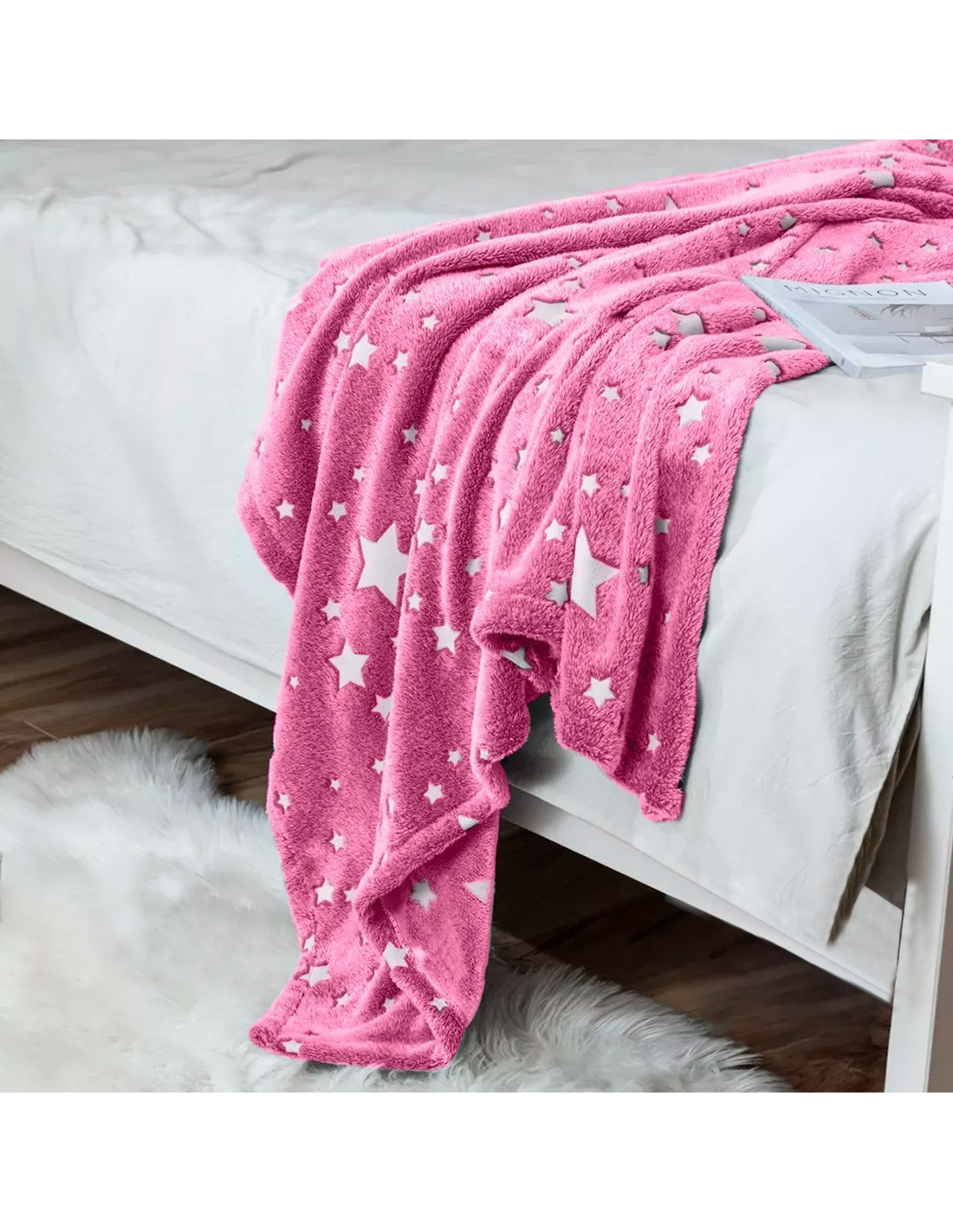 Couverture en flanelle douce magique pour enfants étoiles fluorescentes roses