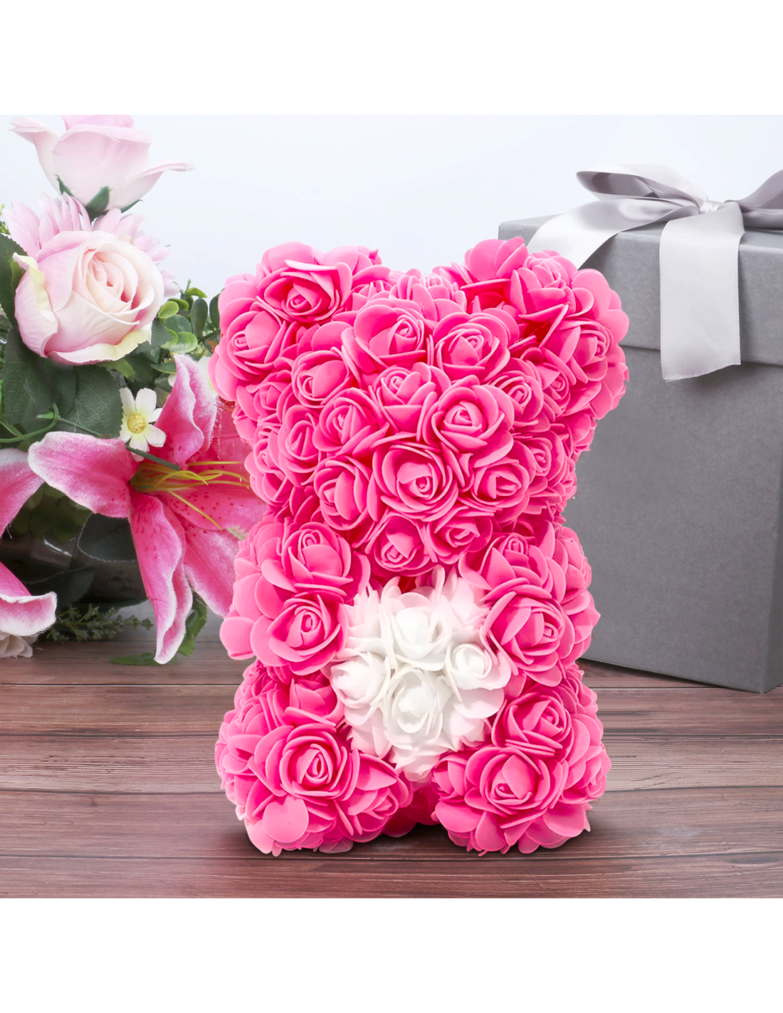 Ours Rose Artificiel H25cm avec Emballage Transparent, Idée Cadeau
