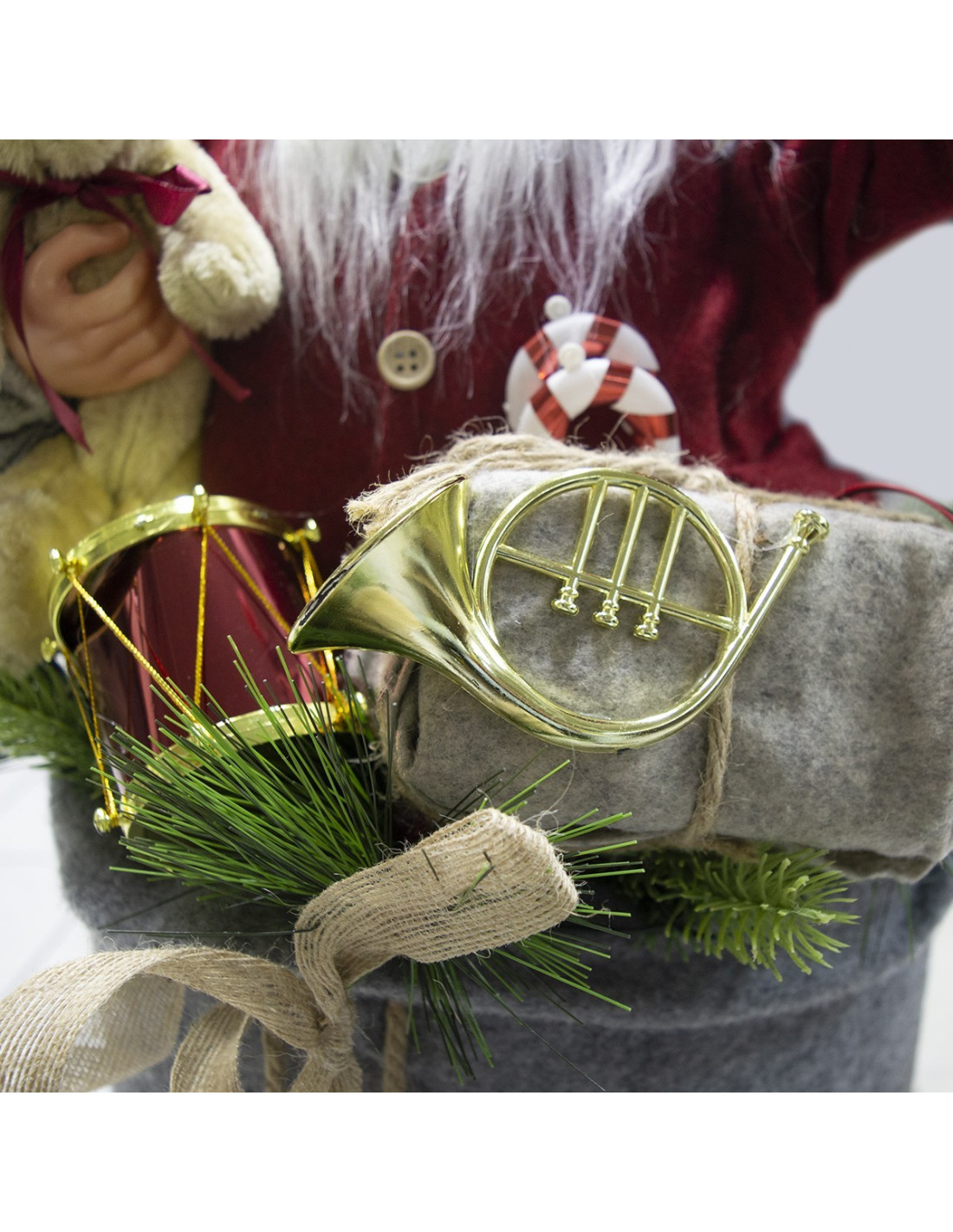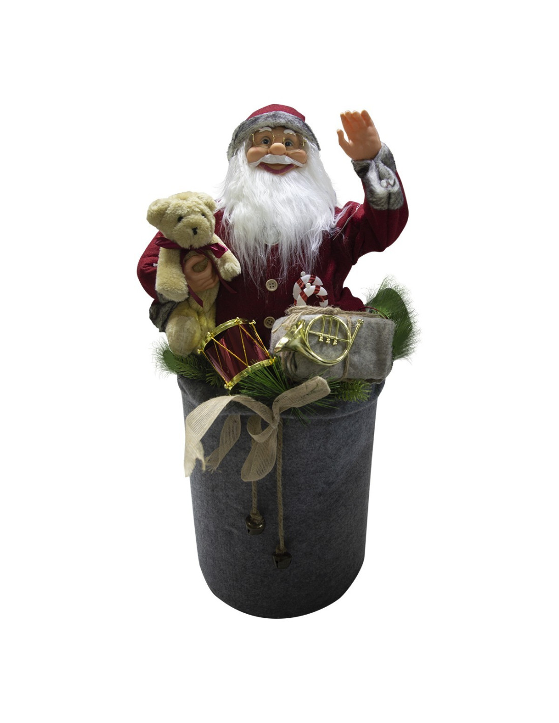 Père Noël rouge gris décoration sac 80cm 900638 musique lumières mouvement