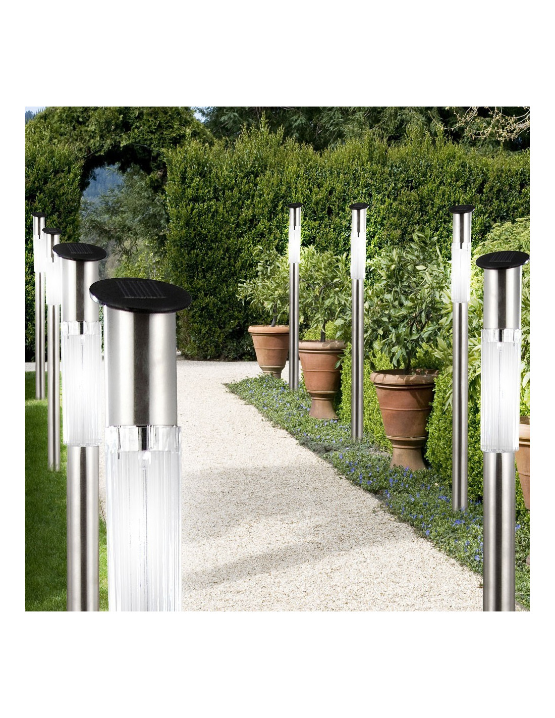 Décorez et illuminez le jardin avec cette fantastique lampe de marqueur de pas. La lampe ne nécessite pas de courant, elle se recharge pendant la journée avec la lumière du soleil, fournissant la lumière nécessaire pour la soirée. Il dispose d’une touche ON/OFF en choisissant le mode d’allumage manuel ou automatique. La lampe fournit un éclairage pendant au moins 6/10 heures, assurant des économies d’énergie et une protection de l’environnement. Ils sont également équipés d’une cote IP55 imperméable à l’eau, qui résiste efficacement à la pluie et à la neige.