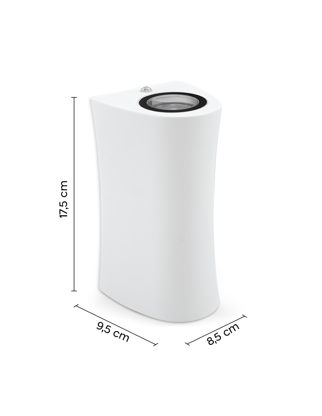 Applique murale en plâtre élégante, design conique adaptée aux intérieurs. Il a une double émission, la lumière sort à la fois du haut et de l'intérieur. Extrêmement décoratif et polyvalent, vous pourrez le peindre, le décorer et le personnaliser avec les couleurs que vous souhaitez et selon votre décoration. Une fois installés au mur, ils garantissent un excellent effet d'éclairage, créant de parfaits jeux de lumière sur les murs. Le matériau extérieur de la lampe est en plâtre durable et facile à nettoyer. Équipé d'une douille GU10, vous pouvez insérer des ampoules Led, fluorescentes ou halogènes (ampoule NON incluse). L'installation est simple, vous pouvez vous aider avec les instructions sur la boîte.