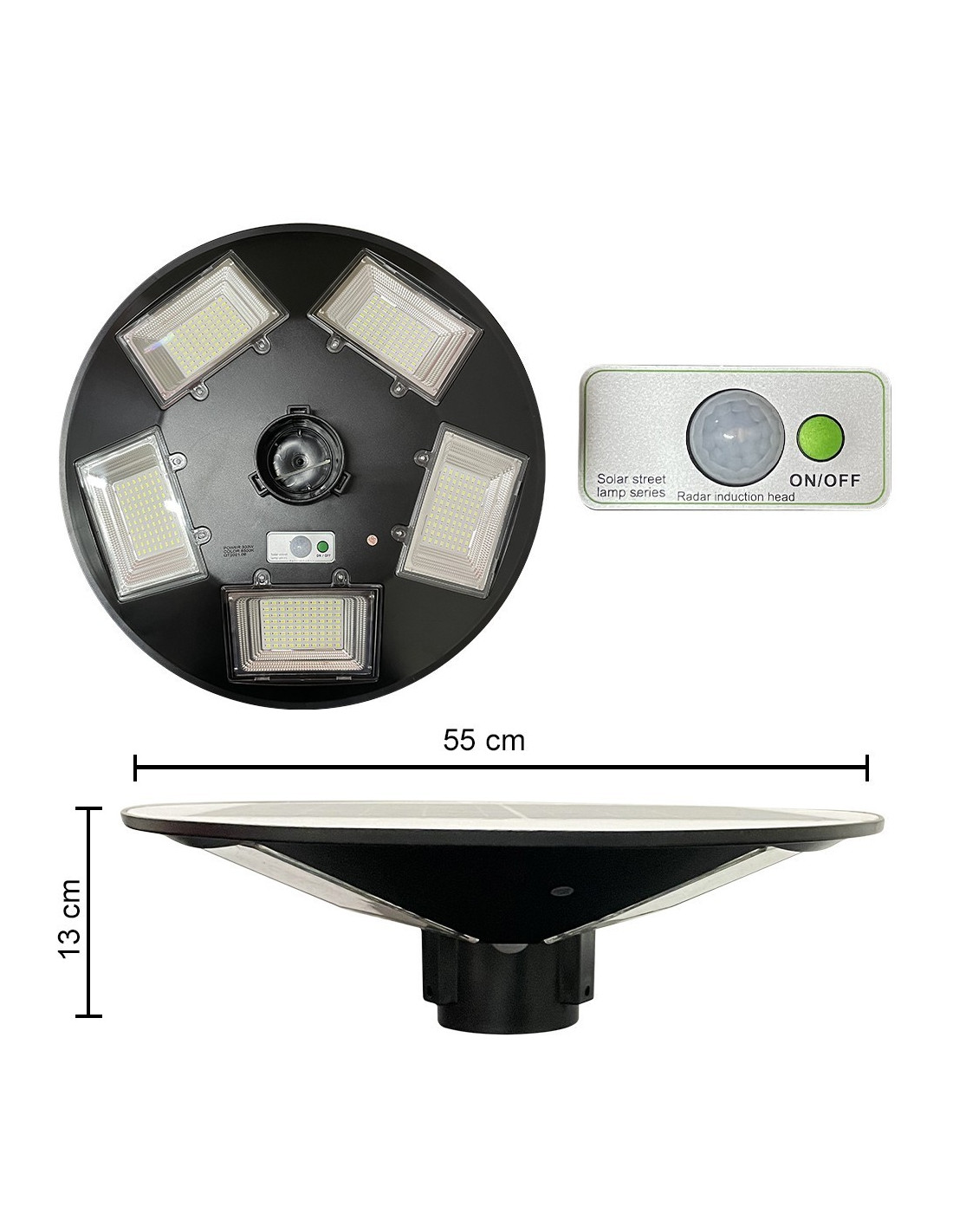 053004 Lampadaire solaire 300W poteau mural courbe télécommande 55x13cm