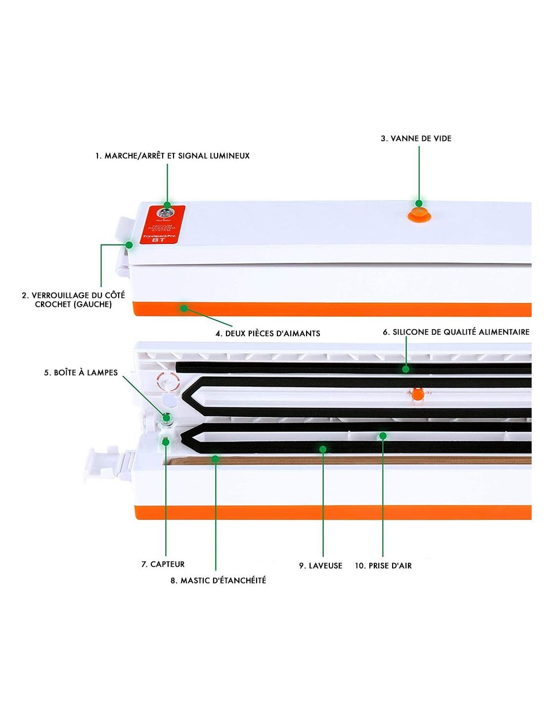 Elle peut être utilisé pour les aliments contenant peu de liquide, à condition de veiller à ce que le liquide ne déborde pas du sac pendant le processus de mise sous vide, car la machine est électrique et doit toujours rester sèche.