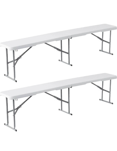 Pack de 2 bancs pliants en plastique blanc pour pique-nique et camping