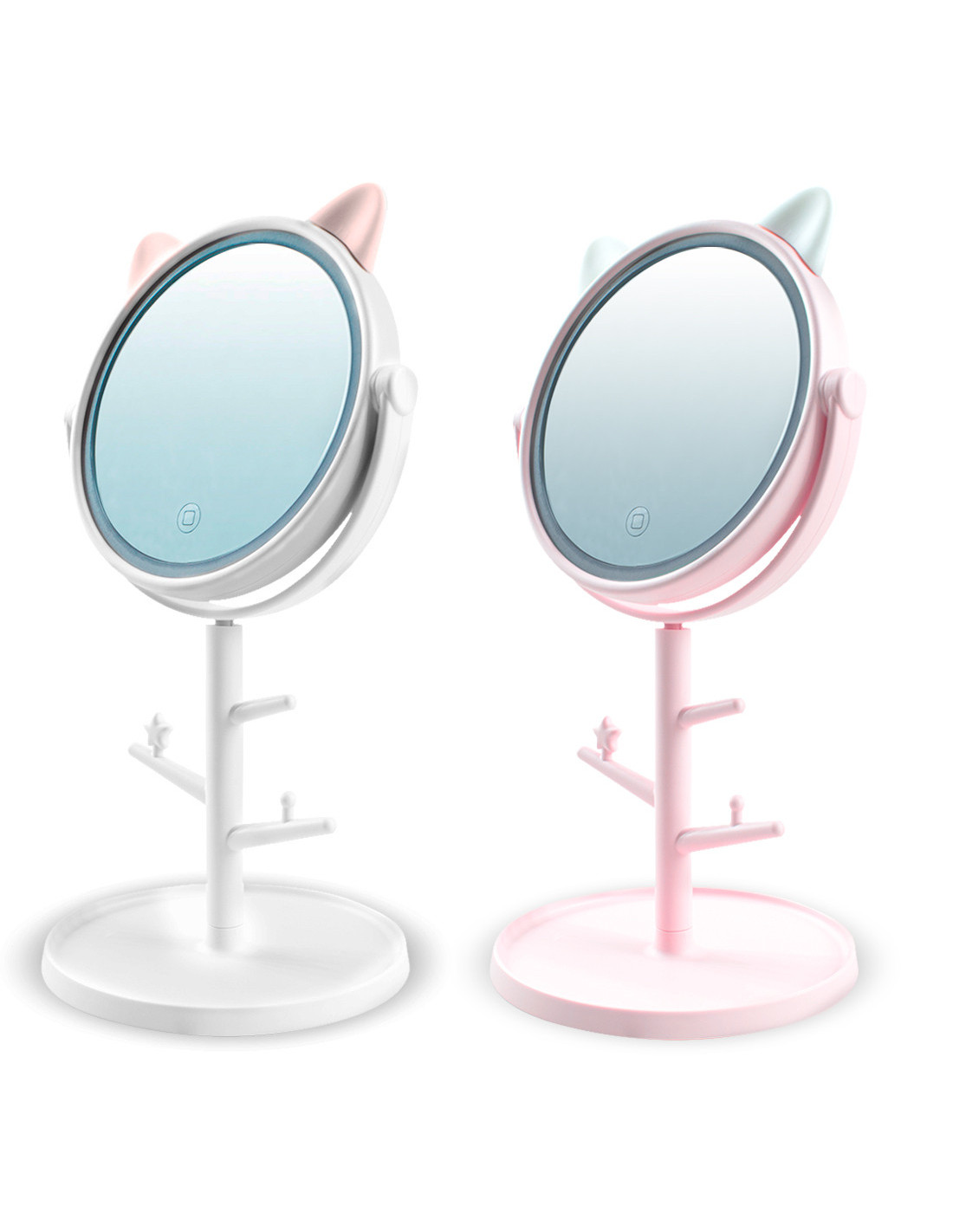 Miroir de maquillage cosmétique de table à LED avec porte-bijoux rechargeable