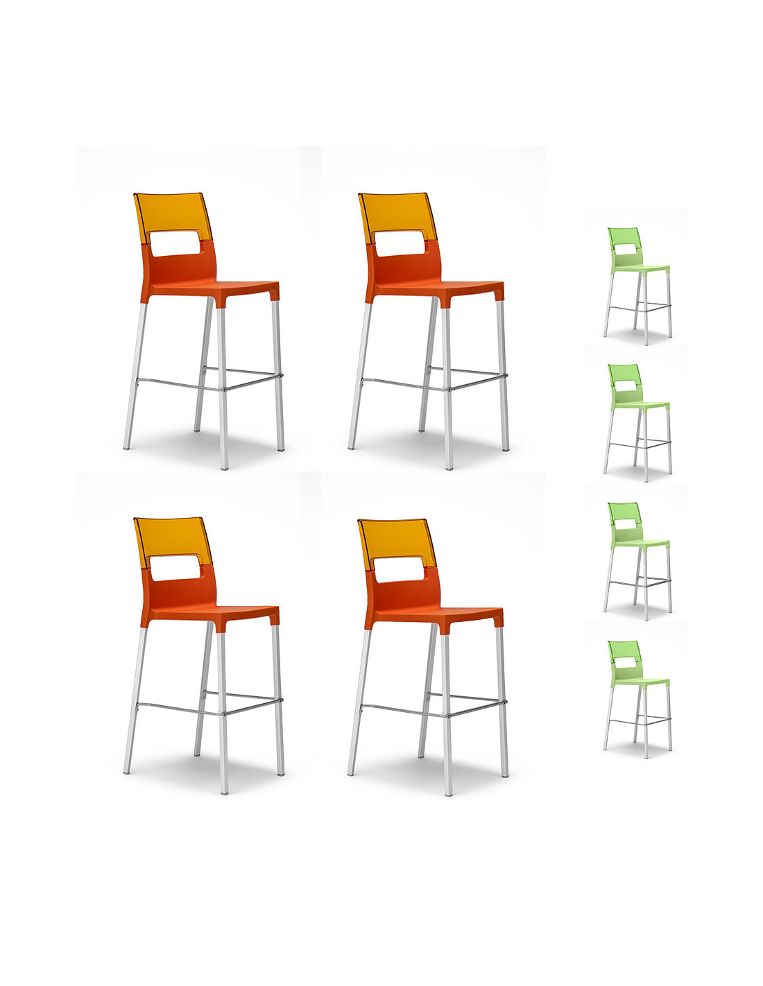 Lot de 4 tabourets DIVA en technopolymère transparent et alu, H65 cm