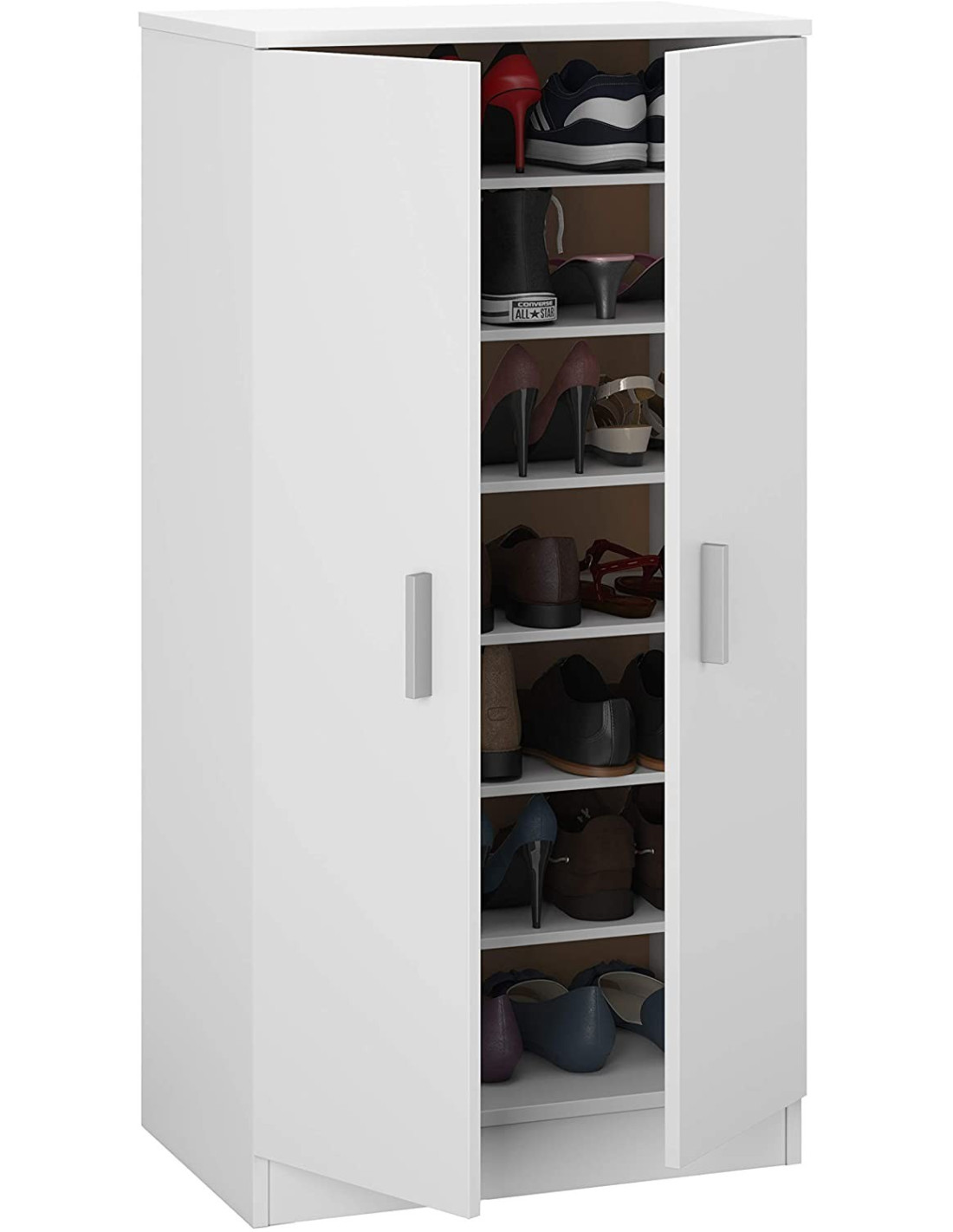 Chaussure mobile, armoire 2 portes 7 étagères en bois Blanc 108x55x36