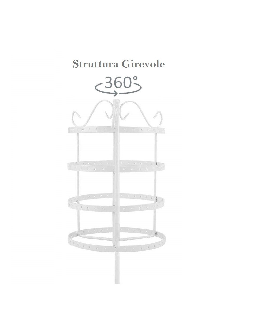 Affichage porte-bijoux à 4 étages, structure pivotante. Contient jusqu’à 96 paires de boucles d’oreilles.
