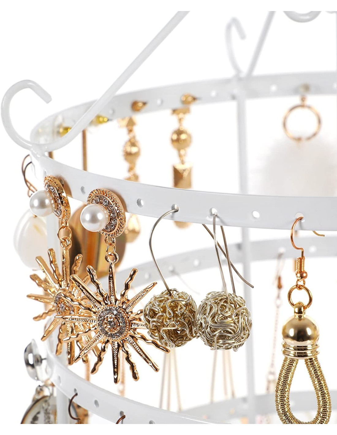 Affichage Porte-bijoux à 4 étages pivotant Blanc Idéale pour boucles d’oreilles