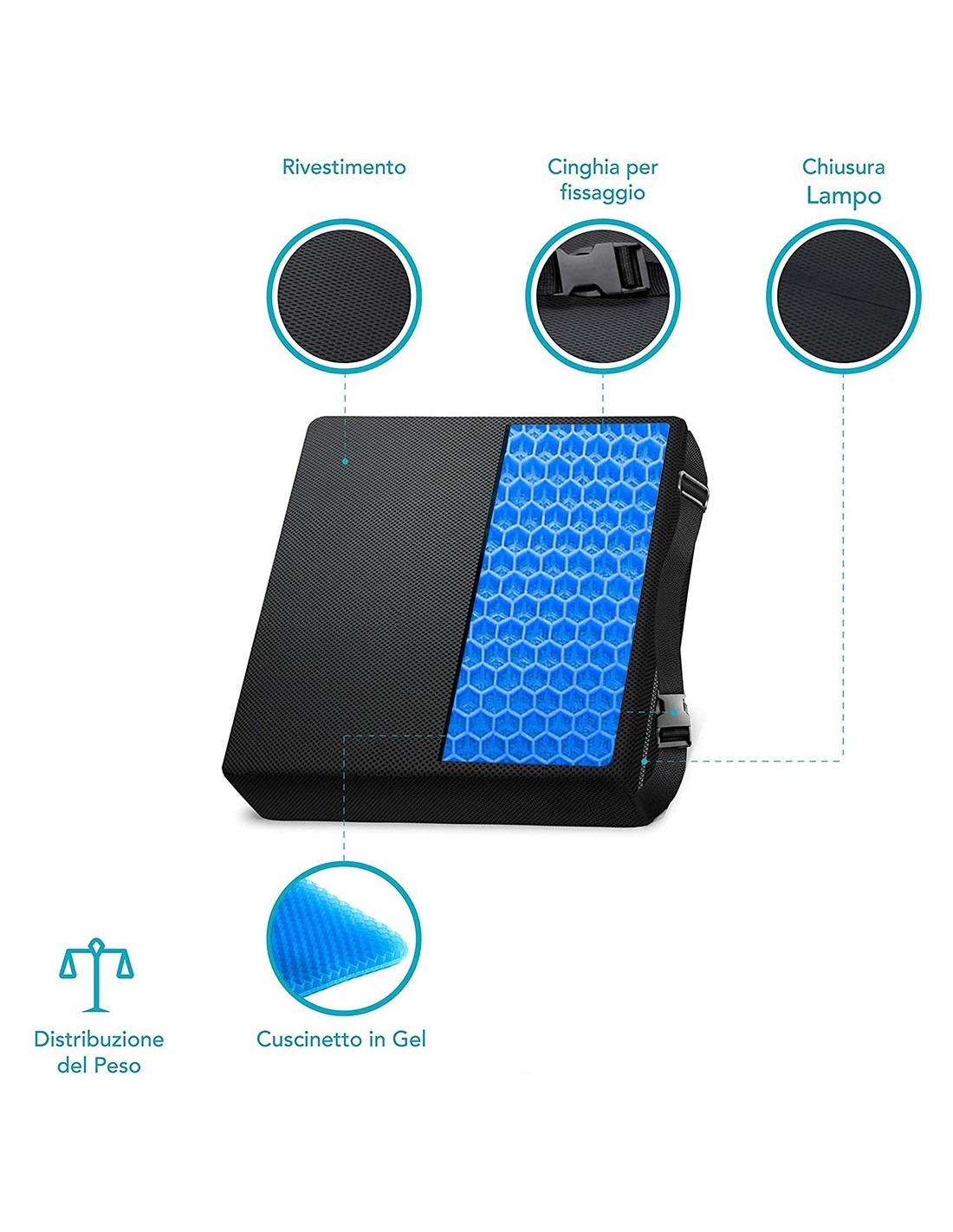 Coussin lombaire ergonomique en gel respirable 210542 pour le dos 33x30x7 cm