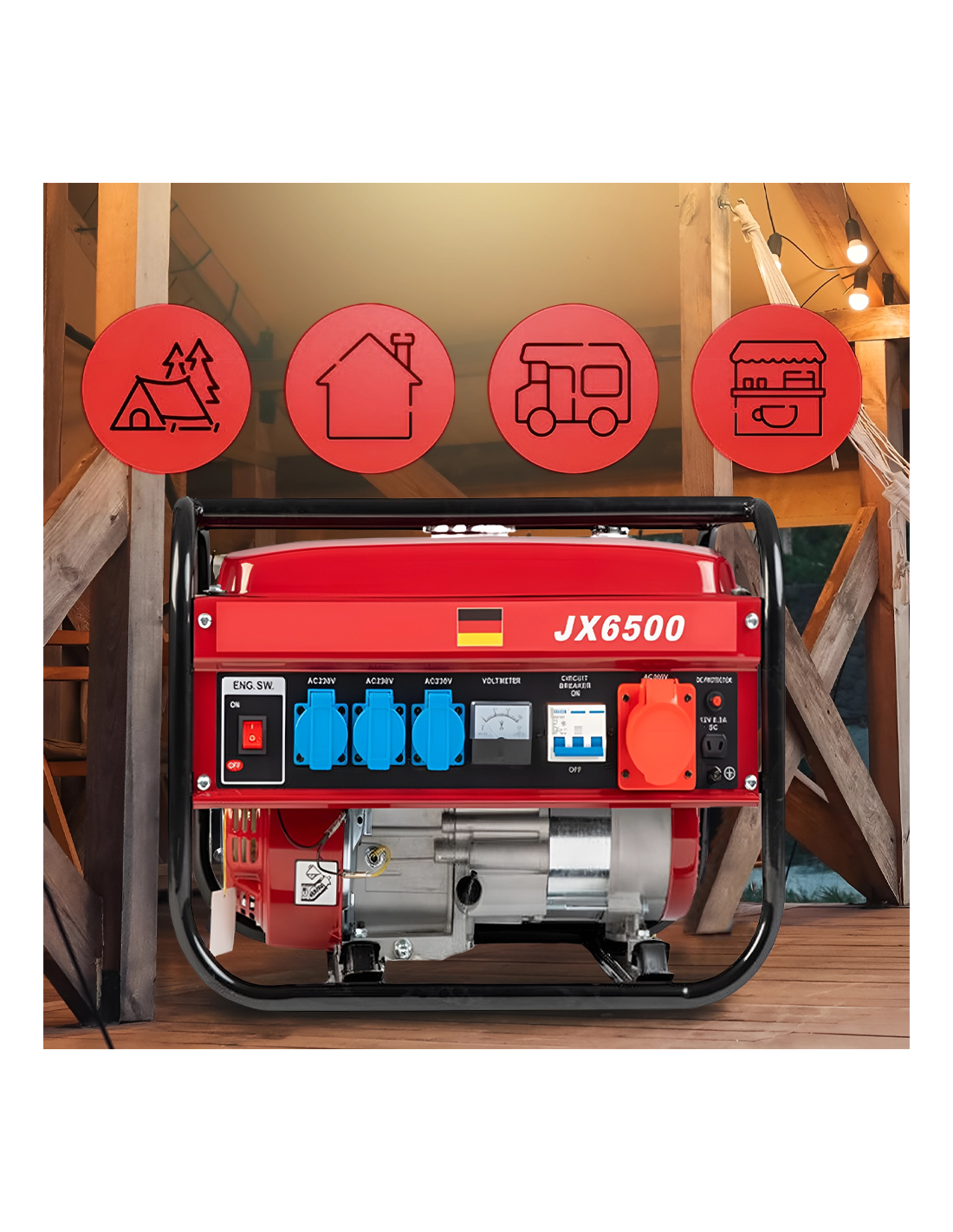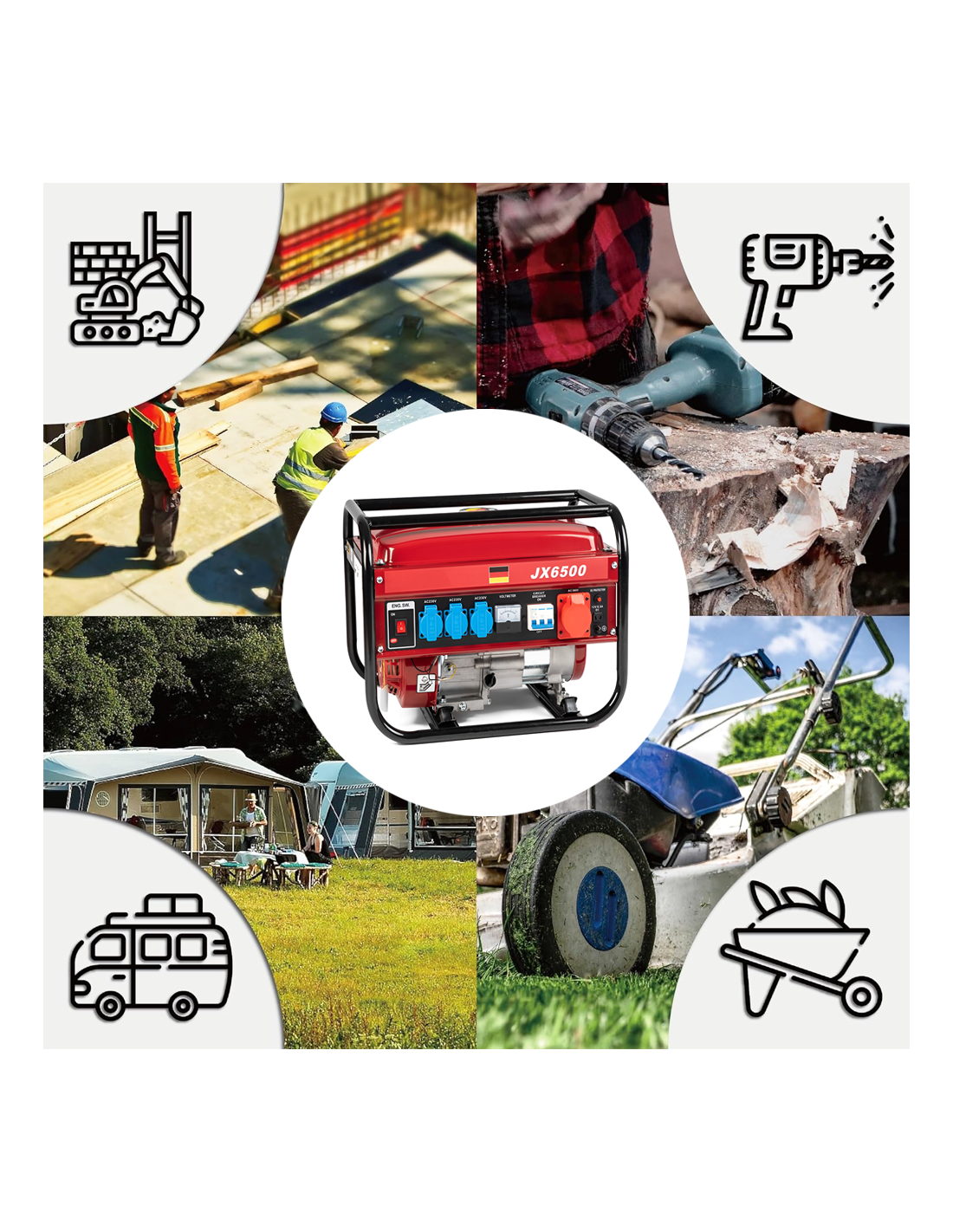 Affrontez toute situation avec le générateur de courant polyvalent et puissant. Avec un moteur à essence 4 temps de 5,5CV et une capacité de 196cc, ce groupe électrogène est conçu pour fournir une puissance maximale de 2000W, idéale pour une utilisation sur chantier, en navigation, à domicile, en camping et dans les bâtiments. Grâce à sa puissance, les coupures d'électricité ne seront plus un problème, vous permettant d'alimenter en toute sécurité et en continu les appareils électriques essentiels. Avec un réservoir de 15 litres, le générateur offre jusqu'à 6 heures d'utilisation continue, garantissant une source d'énergie constante même en cas d'urgence ou dans des endroits sans alimentation électrique. L'indicateur de niveau de carburant vous offre une visualisation immédiate de l'état de fonctionnement du générateur, vous permettant de surveiller facilement les niveaux de carburant et la stabilité du courant fourni. De plus, pour garantir des performances optimales, il est recommandé de remplir complètement le réservoir d'huile avant la première utilisation, réduisant ainsi le risque de dommages au moteur et assurant un fonctionnement sans problème à long terme.