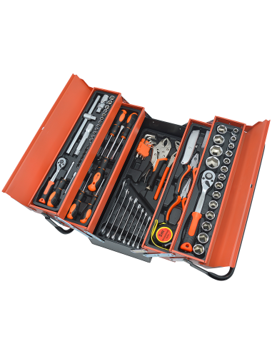 Organisez de manière optimale tous vos outils avec la Boîte à outils. Équipée d'une ouverture à compartiments de 3 niveaux, à l'intérieur vous trouverez une large gamme d'outils, y compris des pinces, des clés, des tournevis et bien plus encore, indispensables pour le bricolage et utiles également pour les professionnels tels que les électriciens, les mécaniciens et les plombiers. La boîte, avec sa grande capacité et son design à compartiments, offre une organisation impeccable, tandis que son design d'économie d'espace garantit que vos outils soient toujours bien rangés et faciles à trouver. Fabriquée en métal avec des matériaux de haute qualité et protégée par un revêtement en poudre antirouille, elle garantit solidité et durabilité dans le temps. Ses deux poignées en acier confortables la rendent facilement transportable où que vous alliez. De plus, la boîte est équipée d'un trou pour insérer un cadenas (non inclus), vous permettant de la fermer pour plus de sécurité et d'éviter la perte ou les dommages aux outils.