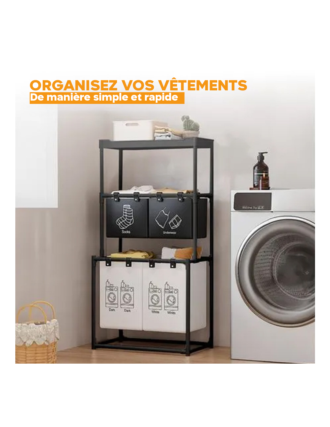 ● ESTHÉTIQUE MINIMALISTE : disponible en noir ou blanc, il s’intègre discrètement dans la chambre, la salle de bain ou la buanderie.