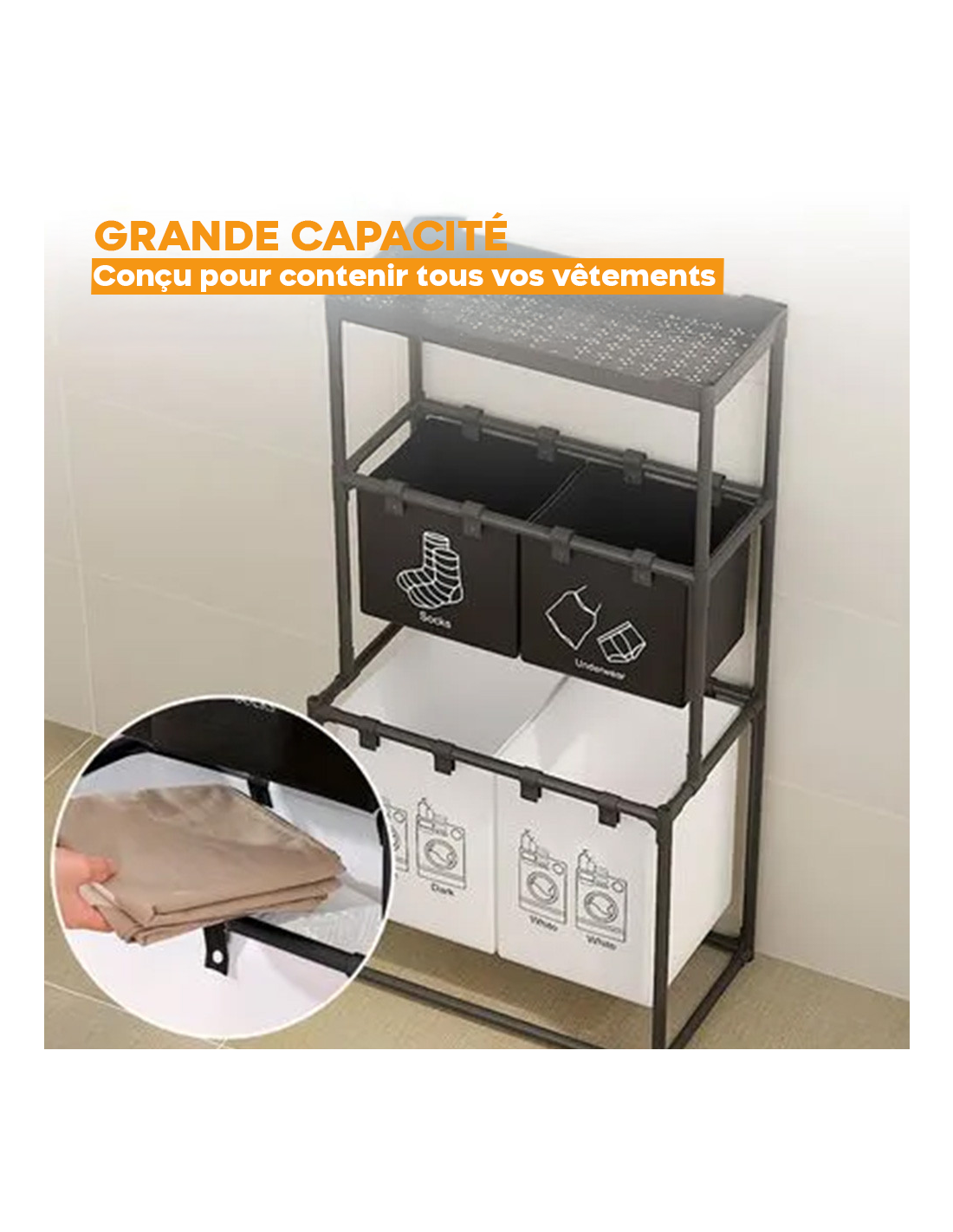 Panier à linge pliable et gain de place