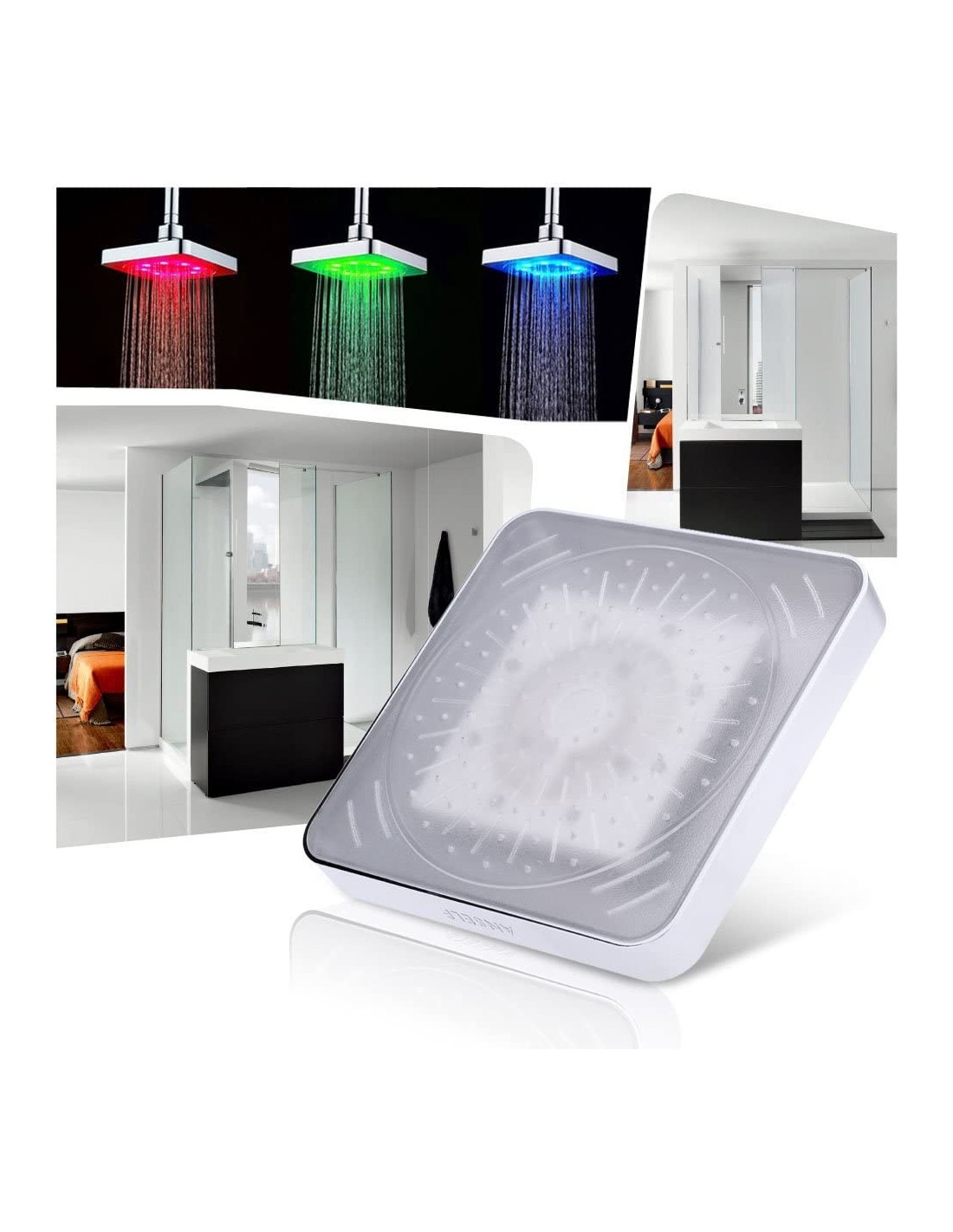 Pomme de douche fixe 8 conduit RGB Chromothérapie carrée en ABS haute pression