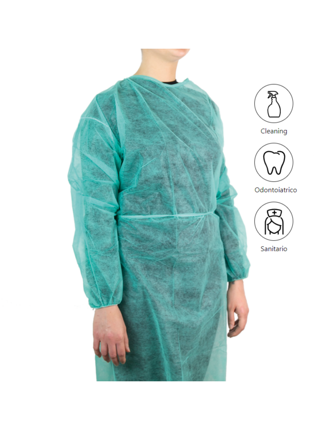 Blouse pour une protection modérée contre la contamination, adaptée aux centres de santé, salons de beauté, industrie alimentaire, laboratoires et autres environnements où un niveau d'hygiène très élevé doit être maintenu.