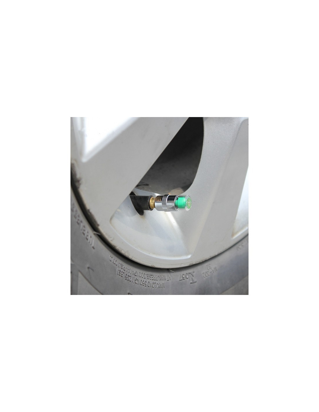 Kit 4 jauges de pression de 2,4 bar UNIVERSAL être appliqués au pneu de votre voiture ou moto.
