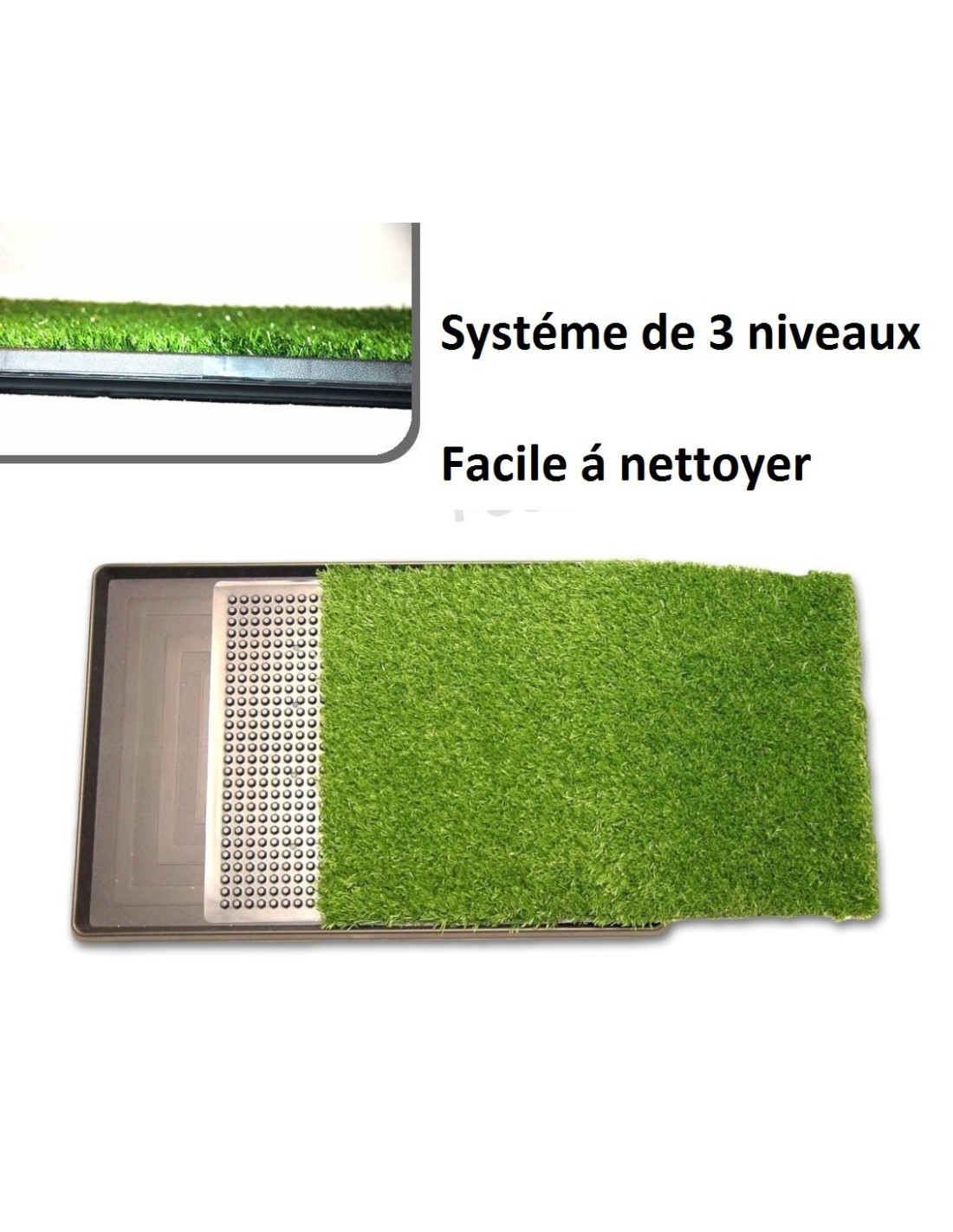 Il existe différents types de Litière, mais pour assurer que le gazon artificiel avec le système de grille soit plus hygiénique pour le chiot, qui ne reçoit pas les pieds sales, et il est certainement le plus facile à nettoyer. En fait, il peut donc être réutilisé de nombreuses fois avec une économie considérable par rapport à d'autres solutions grâce au système à 3 grilles qui facilite le lavage de la zone dans laquelle sont recueillies les besoins.