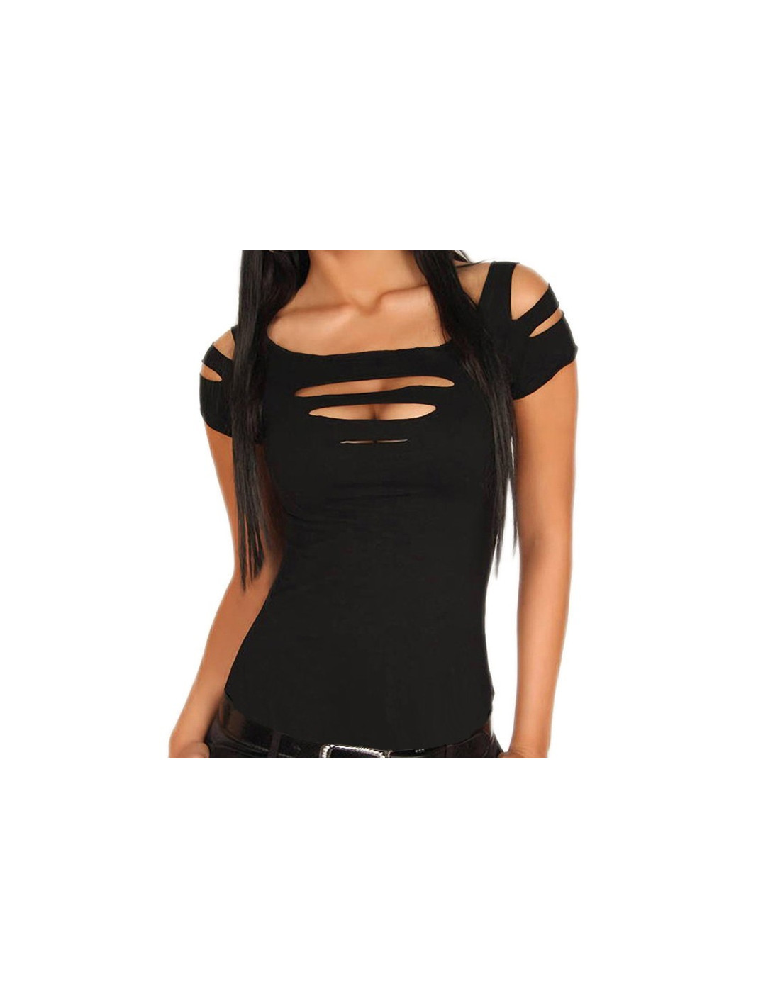 La mode des vêtements déchirés est arrivé à Media Wave Store. Voici ce t-shirt avec détails lacérés au décolleté et aux manches. convient à toute occasion pratique et confortable.