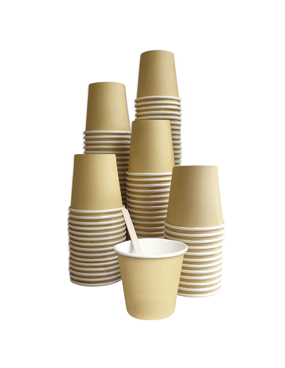 Ils peuvent être utilisés aussi bien avec des boissons chaudes que froides. Ce sont des produits ECO FRIENDLY, parfaits pour la protection de l'environnement. Fabriqué avec du papier biodégradable et peut être jeté directement dans les déchets de papier. Capacité de 75 ml, empilable. Convient pour consommer toutes sortes de boissons.
