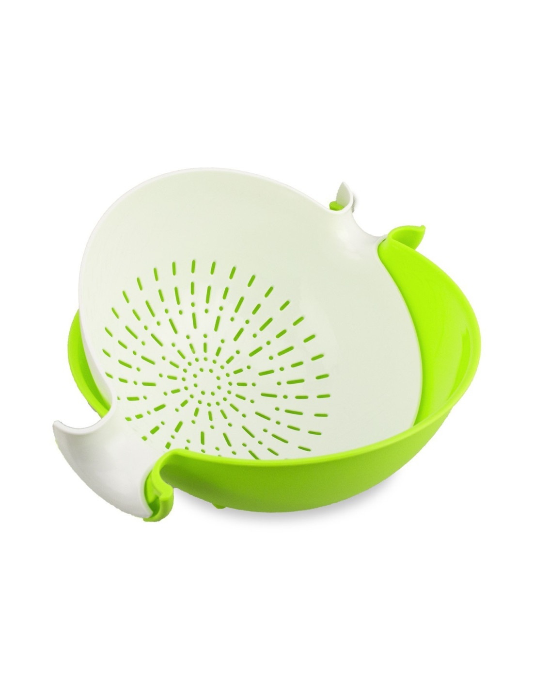 C'est un produit multifonction innovant. Un ensemble composé d'un saladier et d'une passoire pour le lavage, l'égouttage, le service et, si nécessaire, la décongélation des aliments. Avec un système de rotation spécial, utilisez la gravité pour optimiser les gestes dans la cuisine. Le bol peut également être utilisé pour servir la salade directement à la table.