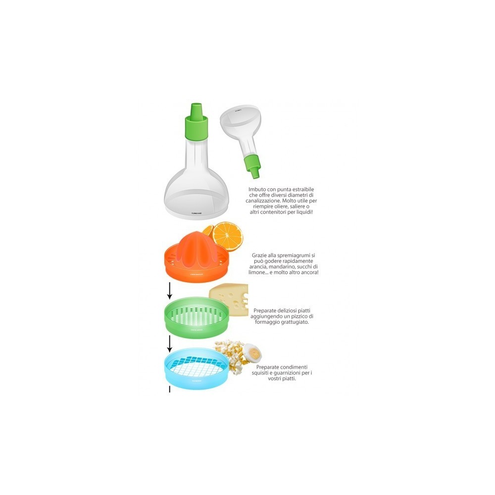 Bouteille multifonction multiples pour la cuisine cuisinier 8 accessoires utiles Août accessoires de cuisine bouteille forme! Un produit original, fonctionnel et pratique qui vous fera économiser du temps dans la cuisine et qui a tout à portée de main. Idéal pour ceux qui ne ont pas beaucoup d'espace dans la cuisine et pour ceux qui ne veulent pas combler la jonque de cuisine, en fait, tous les accessoires sont empilés les uns sur les autres, l'enregistrement d'un grand espace. Il peut être placé sur ne importe quelle étagère, armoire ou un tiroir.